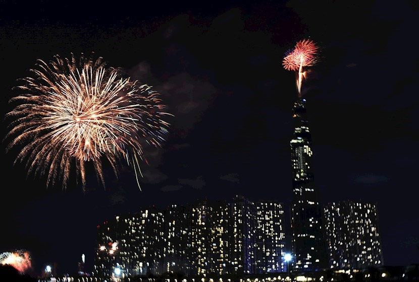 Pháo hoa tại Luân Đôn vào ngày Tết Dương lịch được bắn lúc nửa đêm.